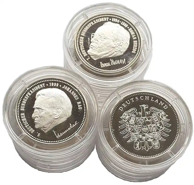 15 Silbermedaillen 150 gr 999/1000 Silber. Bundeskanzler und Bundespräsidenten in Spiegelglanz