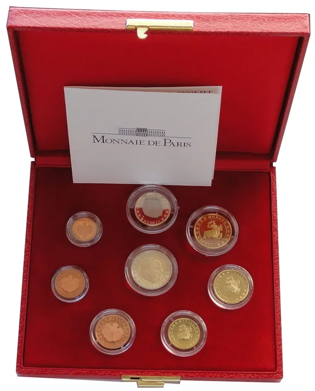 Monaco 3,88 Euro Kursmünzensatz 2001 Polierte Platte im Etui Echt