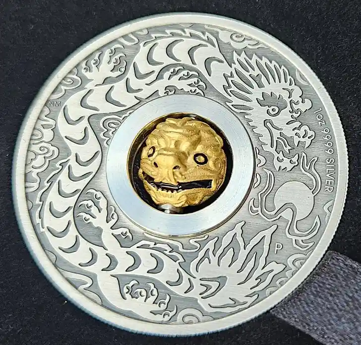 Start » Silbermünzen » Must-Have Tuvalu 1 Oz Silber Rotating Charm Drache Antik Finish 2024