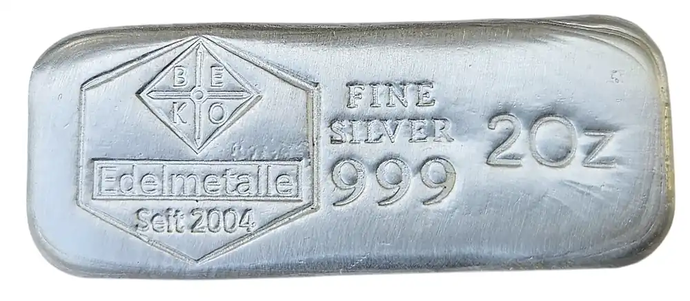 BeKo Edelmetalle 2 Oz Silberbarren 999 Feinsilber (gegossen) Gussbarren