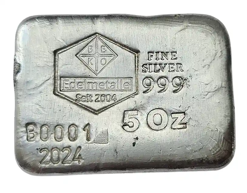 BeKo Edelmetalle 5 Oz Silberbarren 999 Feinsilber (gegossen) Sammlerbarren 2024 – B0001