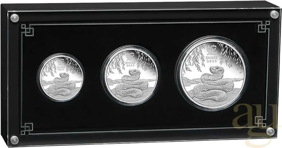 Herkunftsland:AustralienHersteller:Perth MintSerie:Lunar IIIStückelung:1 Unze, 1/2 Unze, 2 UnzenFeingewicht:108,86 GrammFeinheit:999/1.000Nennwert:2 AUD, 1 AUD, 0,50 AUDPrägejahr:2025Erhaltung:polierte Platte, prägefrisch / NeuwareVerpackung:Etui, Münzkapsel, Umverpackung, Zertifikat