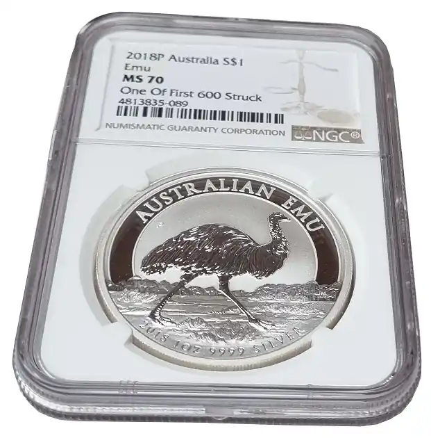 1 Oz Silber Emu 2018 NGC MS 70 – (One Of First 600 Struck) Silbermünze Australien