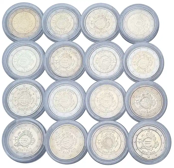 16 x 2 Euro Gedenkmünzen 10 Jahre Euro Bargeld aus diversen Länder in Münzkapseln