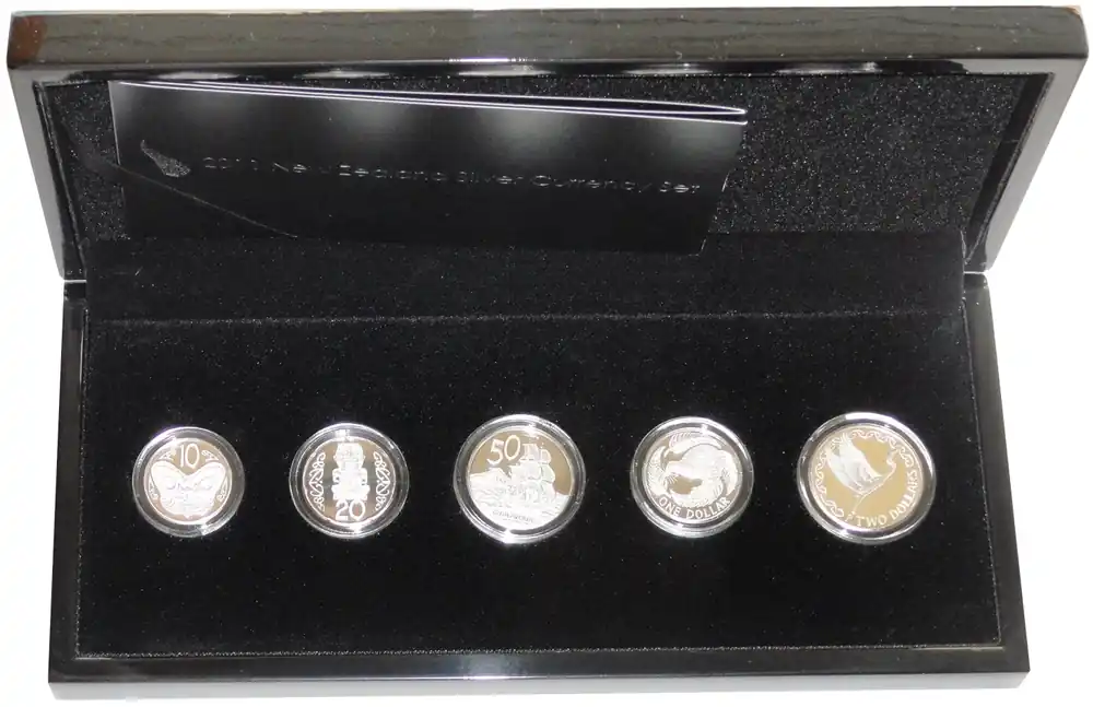 Neuseeland 3,80 Dollar Silber Currency Set 2011 Polierte Platte im Etui Preisreduziert
