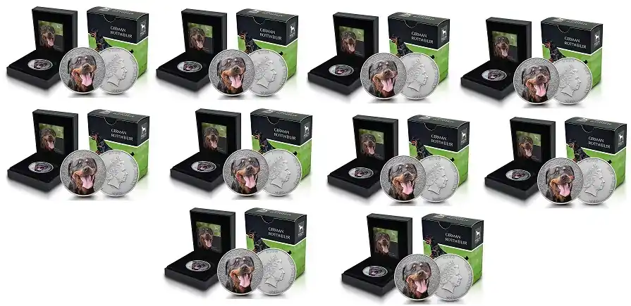 Start » Bestseller » Niue 10 x 1 Oz Silber German Rottweiler / Deutscher Rottweiler 2015 im Etui Mega-Angebot