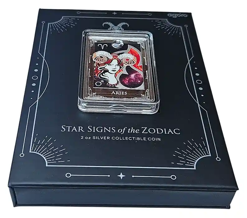 Start » Silbermünzen » Niue 2 Oz Silber Widder – Sternzeichen 2025 Polierte Platte im Etui Neu Im Sortiment