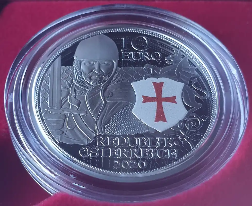 10 Euro Silber Tapferkeit – Kreuzritter 2020 Polierte Platte mit Kettenhemd und Schwert Österreich