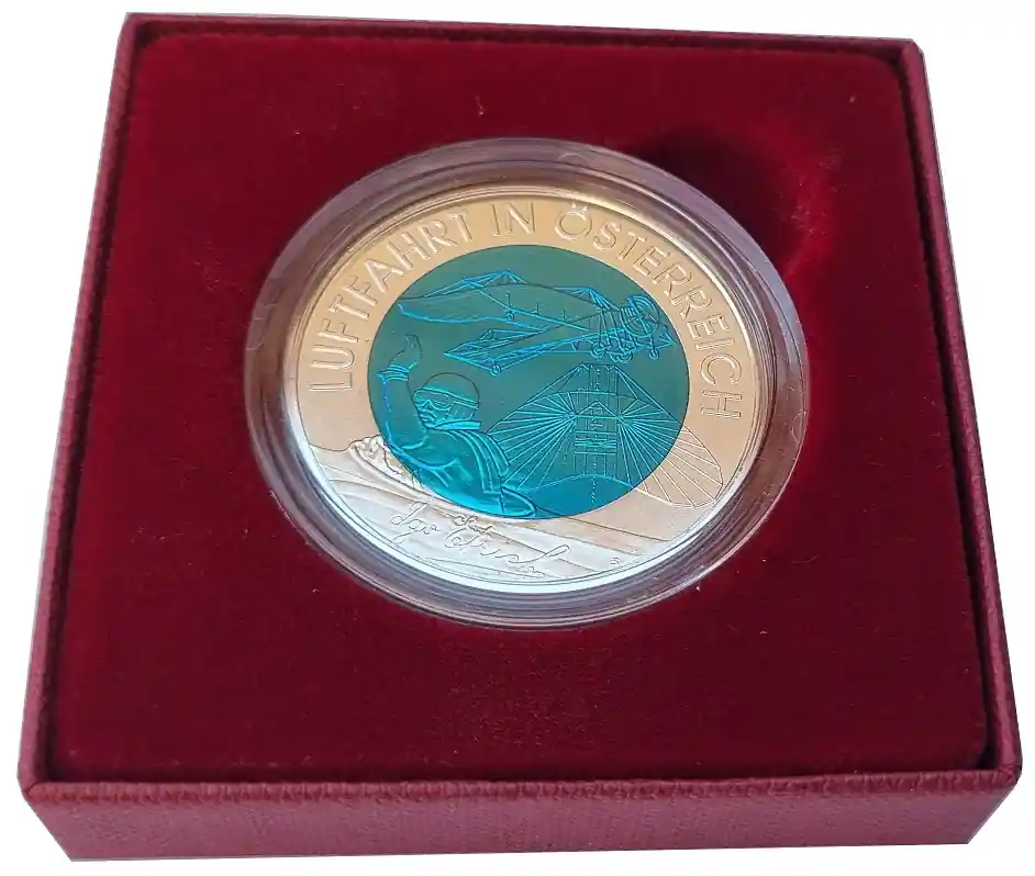 Österreich 25 Euro Silber Niob Münze Österreichische Luftfahrt 2007 Handgehoben