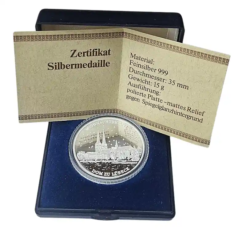 Silbermedaille Hansestadt Lübeck – Weihnachten 1988 Dom zu Lübeck im Etui mit Zertifikat