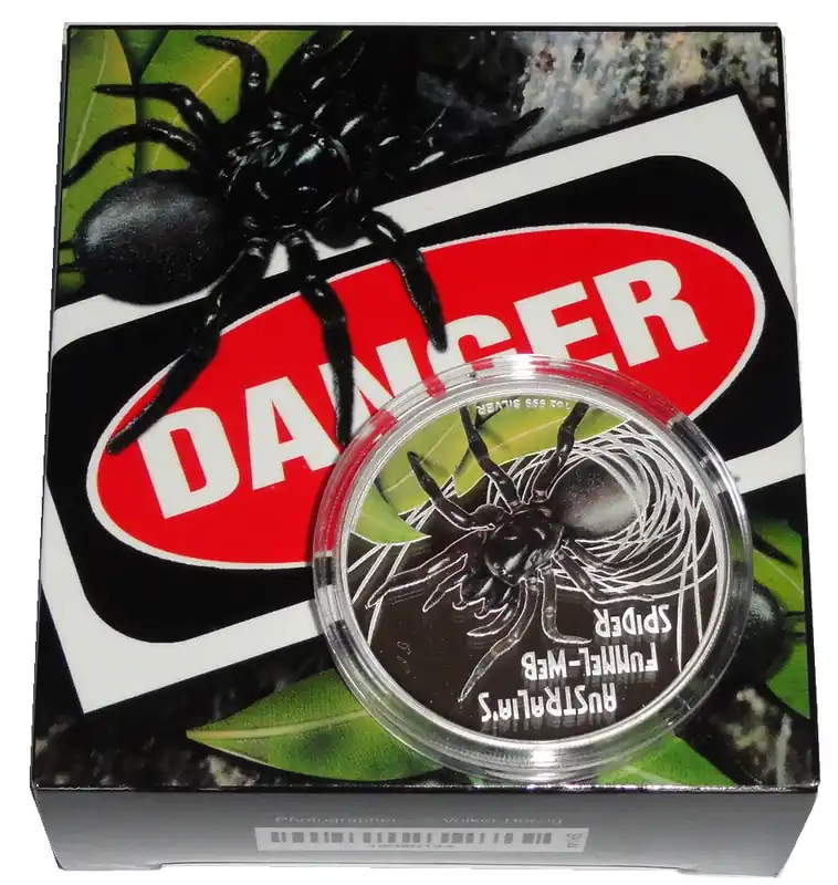 Start » Silbermünzen » Original Tuvalu 1 Oz Silber Funnel Web Spider 2012 Polierte Platte – Deadly and Dangerous Serie