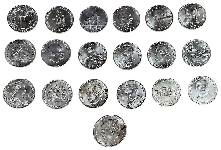 Österreich 19 x 25 Schilling Silbermünzen Komplettsatz 1955 – 1973 Beliebt