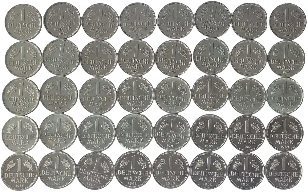 40 DM Umlaufmünzen 40 x 1 Deutsche Mark – Prägejahre 1950 bis 1992