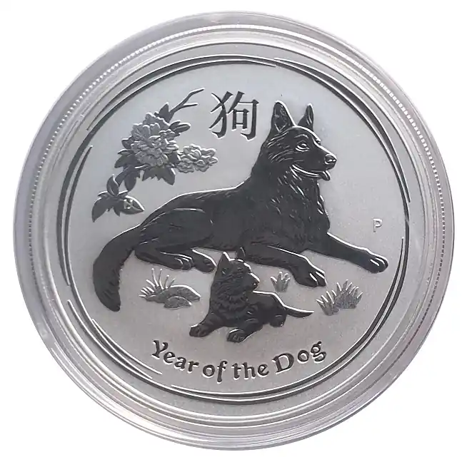 Australien 1 Oz Silber Lunar Hund II 2018 BU in Münzkapsel