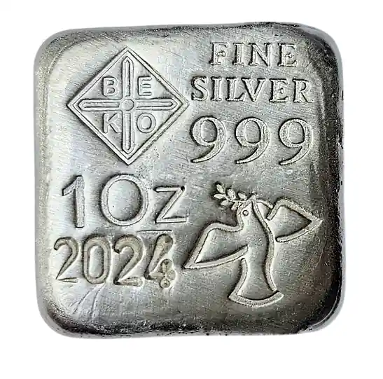 Start » Silberbarren » Preisreduziert BeKo Edelmetalle 1 Oz Silberbarren 999 Feinsilber (gegossen) 2024 Motiv Friedenstaube