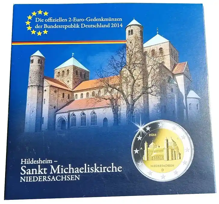 BRD: 5 x 2 Euro Münzen ADFGJ 2014 Kirche St. Michael in Hildesheim Niedersachsen im Folder