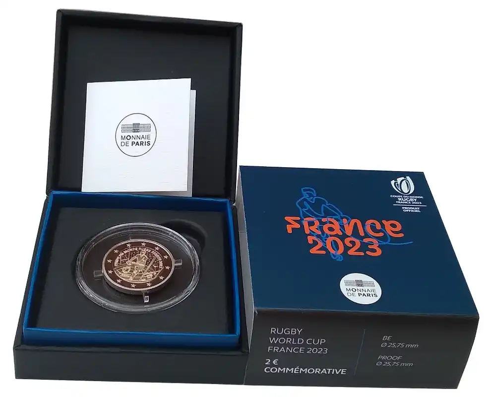 2 Euro Rugby WM 2023 Polierte Platte im Etui aus Frankreich