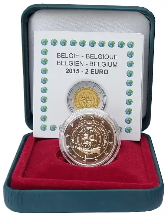 Start » Euromünzen » Premium Belgien 2 Euro Jahr der Entwicklung 2015 Polierte Platte im Etui