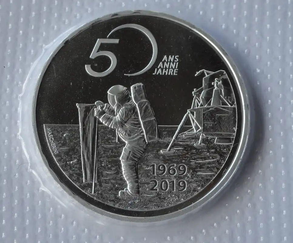 Premium Schweiz 20 Franken Silber 50 Jahre Mondlandung 2019 Apollo 11 Stempelglanz