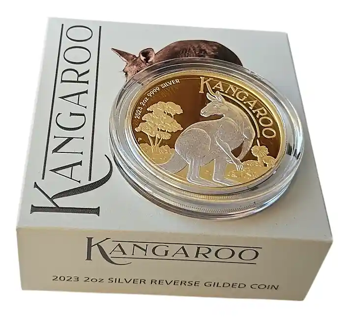 Australien 2 Oz Silber Känguru 2023 Reverse Gilded (vergoldet)