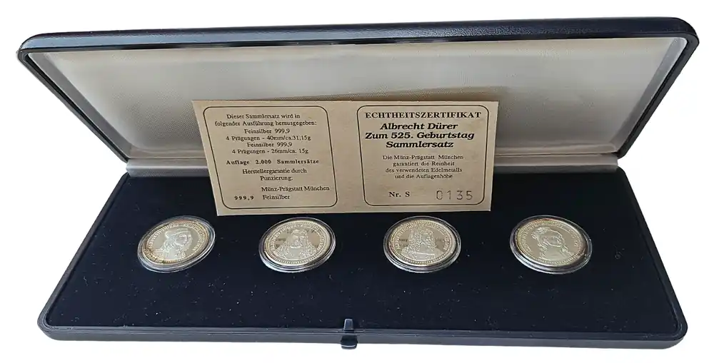 Sammlersatz Silbermedaillen Albrecht Dürer zum 525. Geburtstag mit Zertifikat und Etui