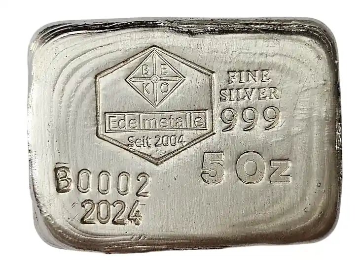 BeKo Edelmetalle 5 Oz Silberbarren 999 Feinsilber (gegossen) Sammlerbarren 2024 – B0002