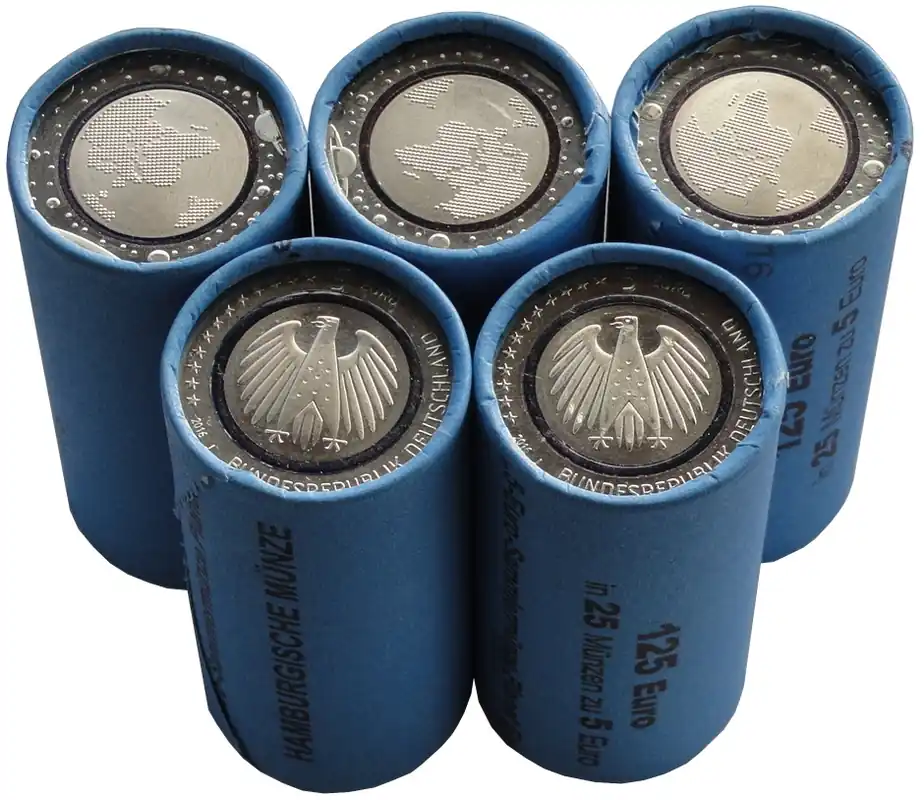BRD: 5 Münzrollen 5 Euro Blauer Planet Erde ADFGJ 2016