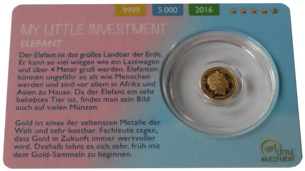 Salomonen 10 Dollars 0,5 gr Goldmünze Baby Elefant 2016