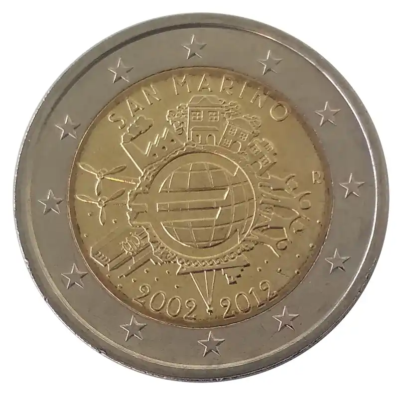 Start » Euromünzen » San Marino 2 Euro Gedenkmünze 10 Jahre Euro Bargeld 2012 in Münzkapsel Schnäppchen