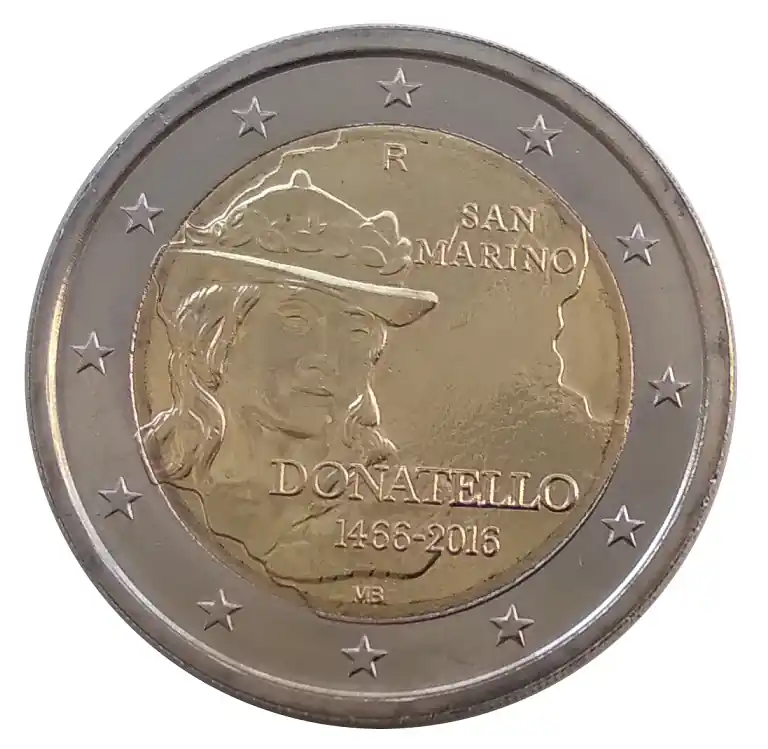 San Marino 2 Euro Gedenkmünze 550. Todestag Donatello 2016 in Münzkapsel