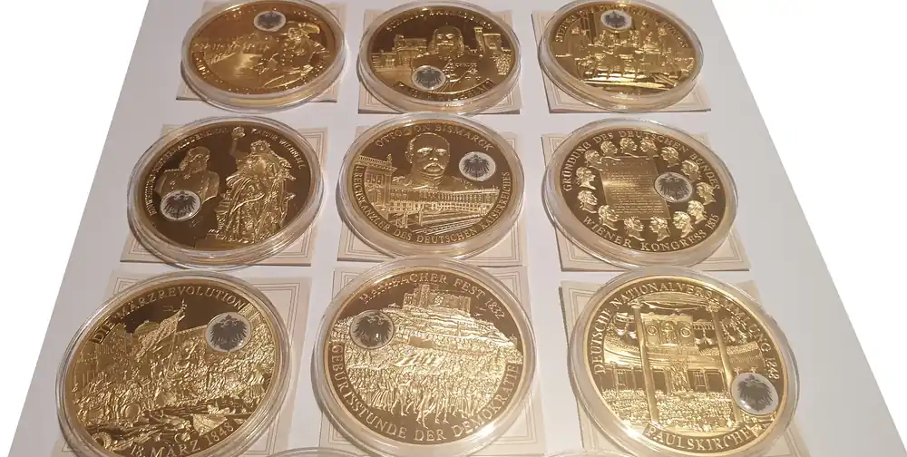 14 x Medaillen Historisches Deutschland Kupfer vergoldet 2009 Polierte Platte