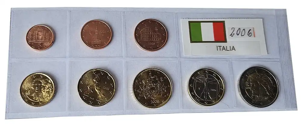 Start » Euromünzen » Sichere Zahlung Italien 3,88 Euro Kursmünzensatz 2006 lose Bankfrisch