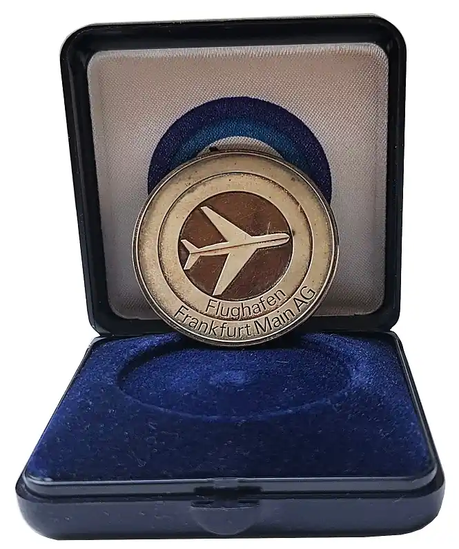 Start » Sonderangebot » Silbermedaille Flughafen Frankfurt Main AG – 1000er Feinsilber im Etui Geprüft