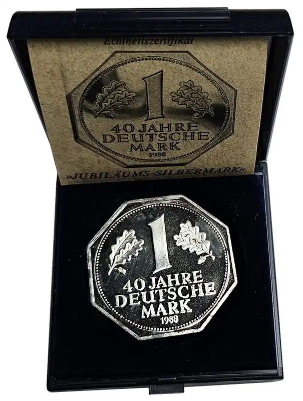 Silbermedaille Jubiläums Silbermark 40 Jahre Deutsche Mark - 999er Feinsilber im Etui Jetzt Bestellen