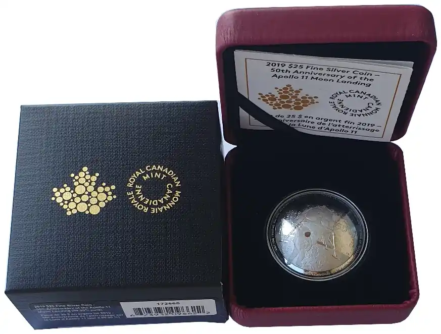 Silbermünze 50 Jahre Mondlandung 2019 – Kanada 25 Dollars Silber Polierte Platte Sichere Zahlung