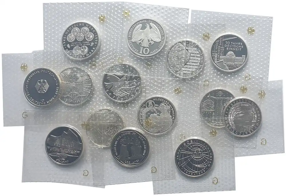BRD: 10 DM Silber Gedenkmünzen 1998 – 2001 Spiegelglanz Noppenfolie