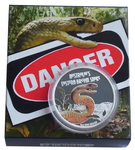 Sonderaktion Tuvalu 1 Oz Silber Eastern Brown Snake 2010 Polierte Platte – Deadly and Dangerous Serie