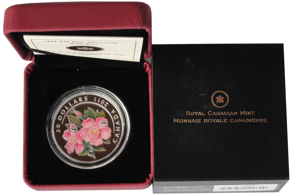 Kanada 20 Dollars 1 Oz Silber Swarovski Crystal Wildrose Pink 2011 PP im Etui