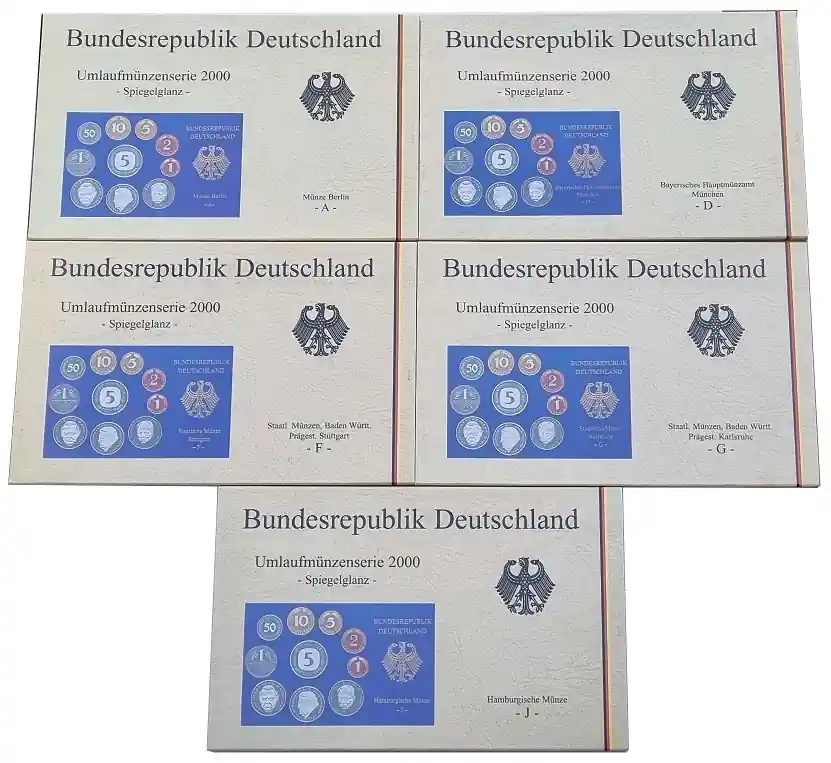 BRD 5 x 12,68 DM Kursmünzensatz ADFGJ 2000 – Spiegelglanz OVP