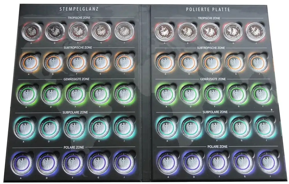 Sammelalbum 5 Euro Klimazonen mit 5 x 5 Euro Tropische Zone ADFGJ Stempelglanz und Polierte Platte