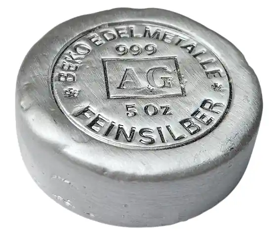 BeKo Edelmetalle 5 Oz Silberbarren – Rundbarren 999 Feinsilber (gegossen) Sammlerbarren