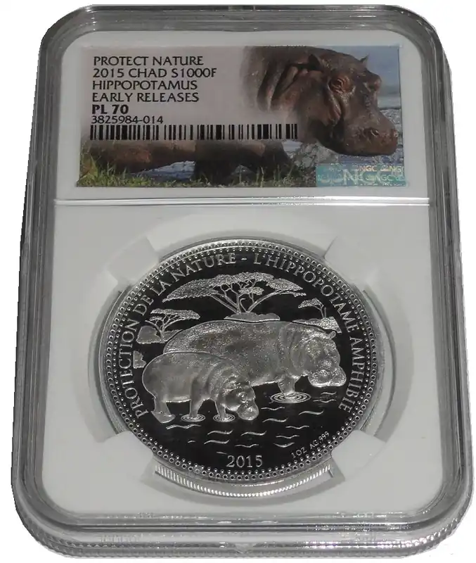 Tschad 1 Oz Silber Nilpferd ( Hippo ) 2015 NGC – PL 70