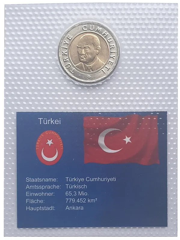 Türkei 1 Yeni Türk Lirasi Mustafa Kemal Atatürk 2005 Bimetall Münze Folie verschweist