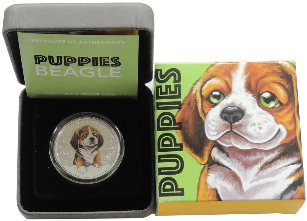 Tuvalu 1/2 Oz Silber Beagle Puppis Welpe 2018 Farbe Polierte Platte