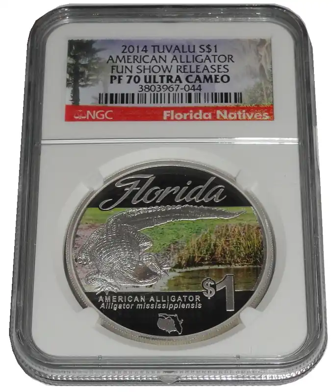 Tuvalu 1 Oz Silber Florida Alligator 2014 NGC PF-70