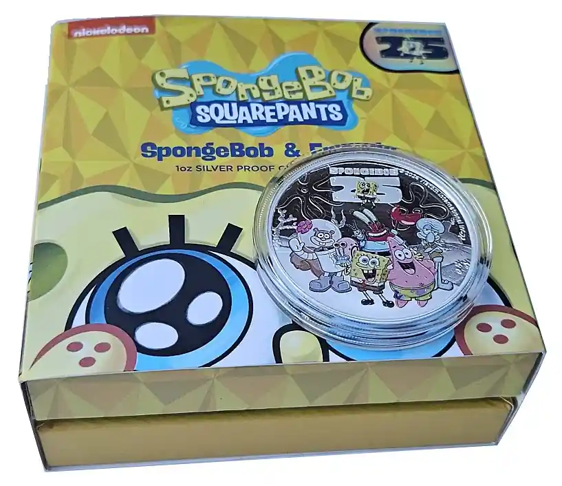 Start » Silbermünzen » Tuvalu 1 Oz Silber SpongeBob Schwammkopf & Friends 2024 PP Farbe im Etui Original