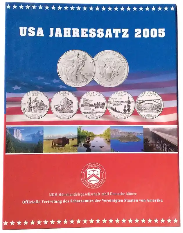 USA Jahressatz 2005 – 1 Oz Silber Eagle + 5 x Quarter Dollar im MDM Folder