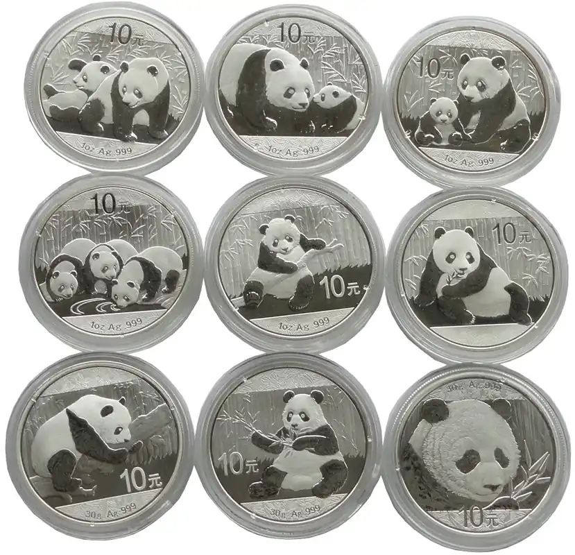China 9 x 10 Yuan Silber Panda Sammlung 2010 – 2018