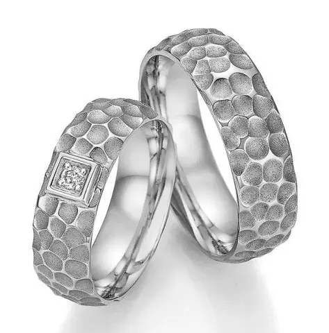 Kollektion:Honeymoon Solid XModell: 14368Material:lieferbar in Gelbgold, Weißgold, Roségold, Platin und PalladiumBreite:ca. 6,5 mmStärke:ca. 2,2 mmSteine:wählbar mit Brillant in quadratischer Fassung 0,070 ct/wsi Oberfläche: gehämmertRingschiene: massiv, bombiert (für bessere Trageeigenschaften)