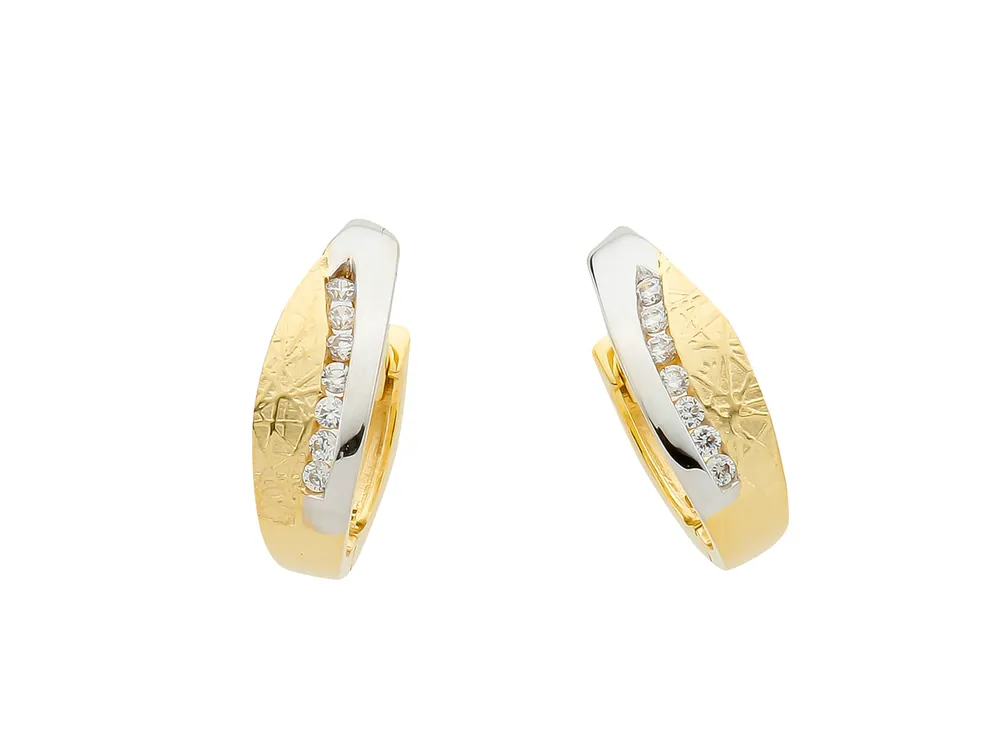 Verleihen Sie Ihrem Look eine strahlende Eleganz mit diesen rhodinierten Creolen aus 585/-Gelbgold, die mit funkelnden Zirkonia-Steinen verziert sind. Ein Schmuckstück, das Ihre Ausstrahlung unterstreicht und Ihrem Stil eine besondere Note verleiht. Die Creolen haben einen Durchmesser von 11 mm und sind 6 mm breit.